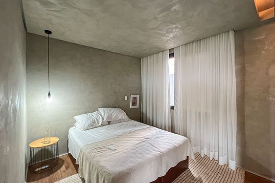 Uma única fachada minimalista e brutalista abriga a entrada de duas casas da família de um dos sócios do Studio Roque. Espaços amplos e a integração de ambientes possibilitaram com que pessoas com hábitos diferentes pudessem habitar casa idênticas sem perder sua personalidade.