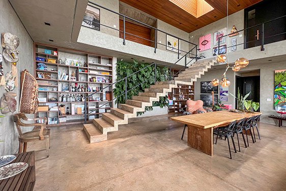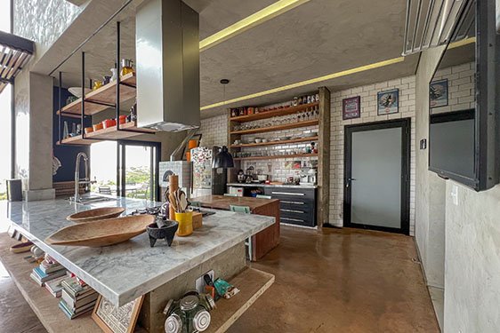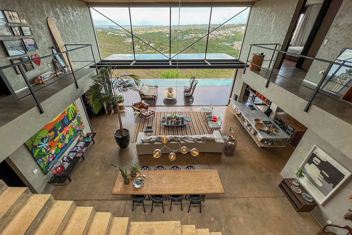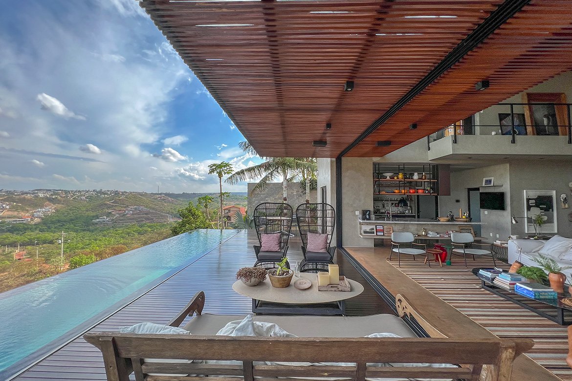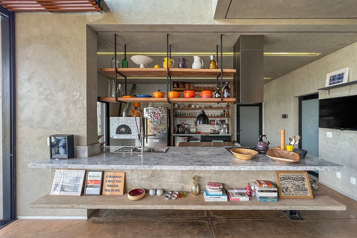Tragaluz é um projeto único e especial principalmente pela integração dos ambientes. Para Rômulo Carvalho, “O coração da casa acaba sendo a cozinha.” Além de adorar cozinhar e receber, quem está na cozinha sabe de tudo o que está acontecendo, quem está na piscina, nos quartos ou chegando na residência.